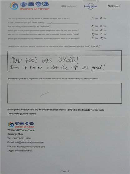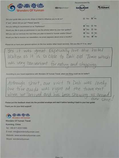 Do you want to know their reviews of traveling in Yunnan? Please see the real guest feedback below: